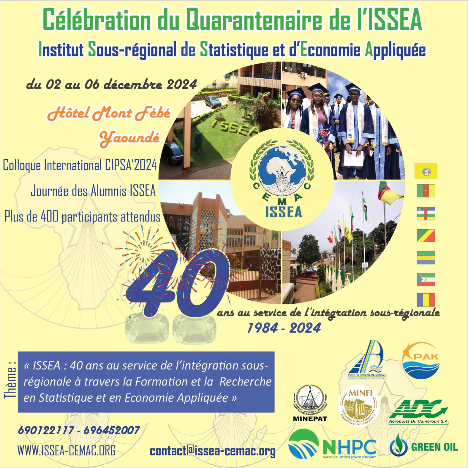 L’Institut Sous-régional de Statistiques et d’Economie appliquée fêtera ses 40 ans d’existence du 02 au 06 décembre 2024 à l’hôtel Mont Fébé, Yaoundé, Cameroun.