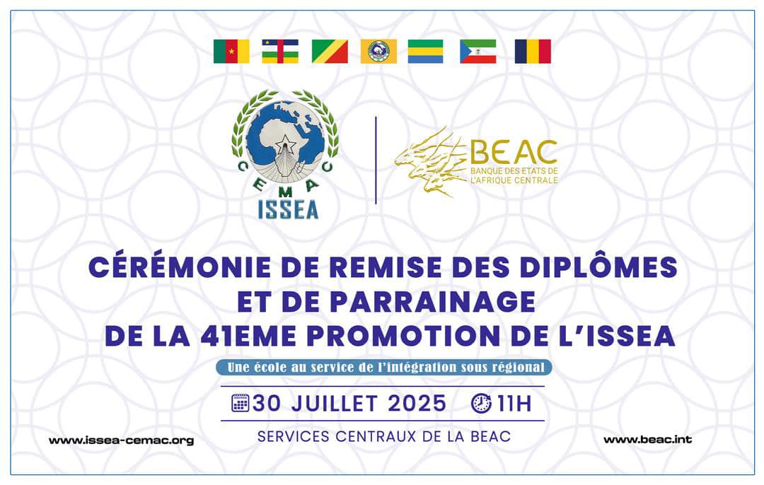 Ce 30 juillet 2025, la Banque des États de l’Afrique Centrale (BEAC) accueillera une cérémonie de remise des diplômes marquant l’entrée sur le marché professionnel des Analystes Statisticiens et Ingénieurs Statisticiens Économistes de l’ISSEA. Placée sous le parrainage du Gouverneur de la BEAC, M. Yvon Sana Bangui, cette promotion incarne l’excellence académique et la vision stratégique nécessaires pour impulser le développement de l’Afrique.